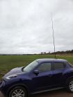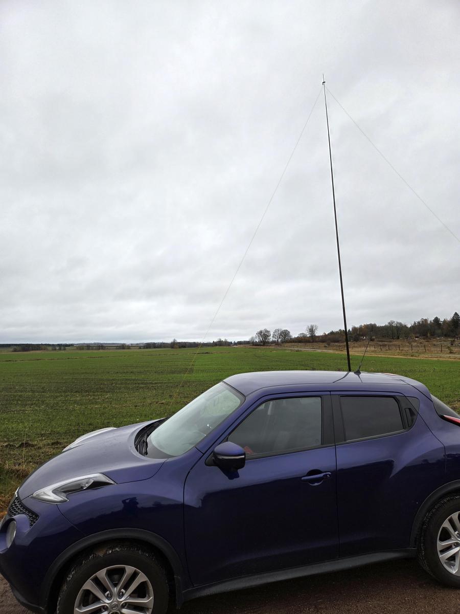 Jag har testst några gånger att använda ett belysningsstativ att fädta antennen på och om jag skickar upp den några meter o ställer den nära moppen så funkar det bra utan att trassla med radialerna.